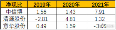 意华股份2021年净现比为负,主要是:因为大宗材料涨价导致的备料存货增加以及投资损失影响,导致经营现金净额为负。