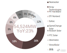 图:2021年全球跟踪支架市场占有率情况 来源:CPIA、索比光伏网、头豹研究院